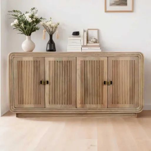 Introducing the Mango Wood Sideboard, a stylish and eco-friendly furniture piece that adds charm to any space. Crafted from sustainable mango wood, this sideboard offers ample storage for all your belongings. Its sleek design and natural finish blend beautifully with any decor. Whether you need to organize books, display decor, or store essentials, this sideboard has got you covered. Upgrade your home with this versatile and durable piece that's not only functional but also environmentally conscious. Get ready to transform your living space with the Mango Wood Sideboard - the perfect combination of style and sustainability.